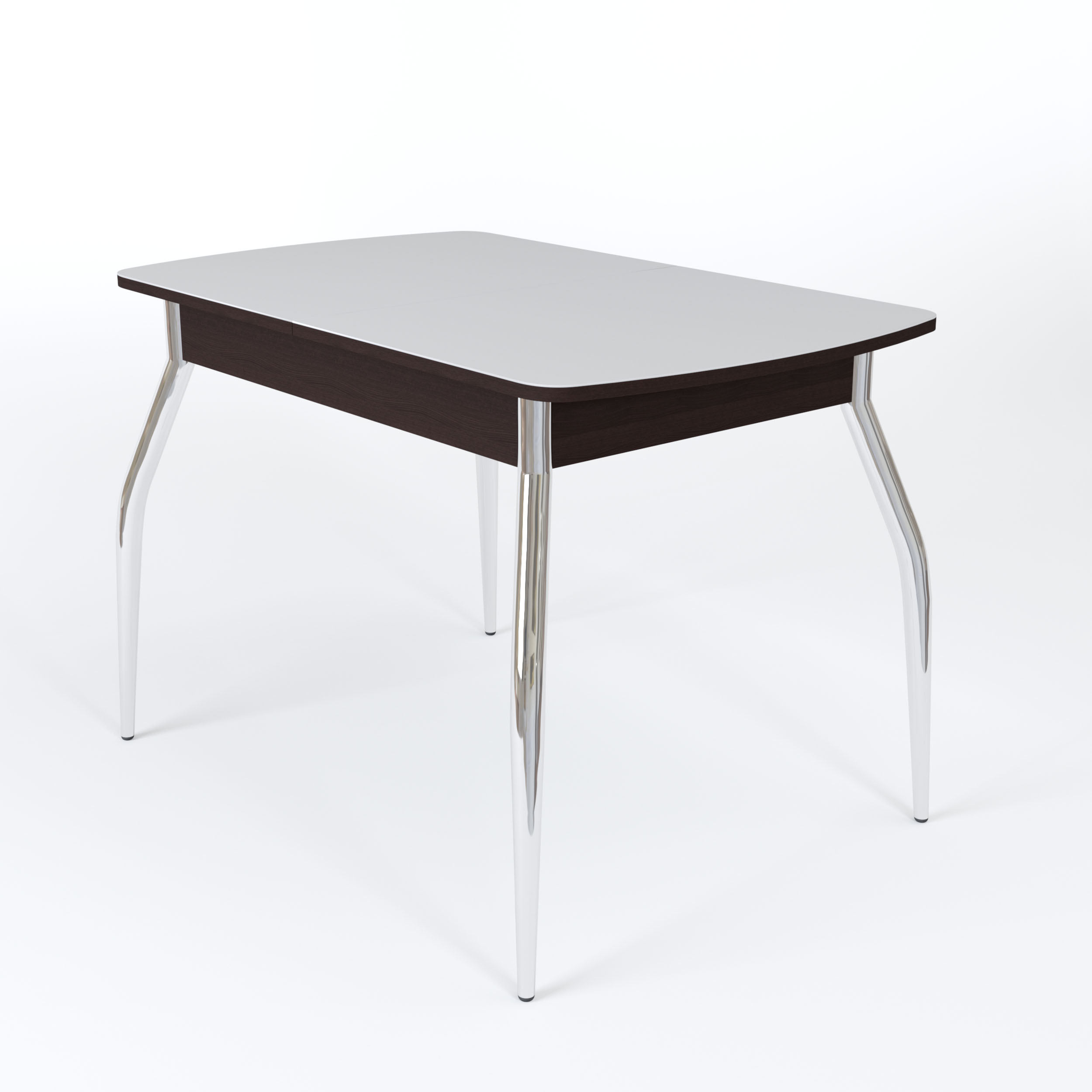 Столешница имеет размер 1 м 10 см, синхронно-раздвижной механизм “бабочка” позволяет увеличить ее еще на 30 см и увеличить количество посадочных мест. Материалы изготовления - ЛДСП, МДФ и закаленное стекло. В ассортименте варианты с цветным стеклом, с узором, с кожзамом, с фотопечатью и даже с искусственным камнем. Ножки могут быть гнутыми или прямыми, из хромированной стали или массива березы в одном из трех цветов - выбор комбинаций просто огромный.