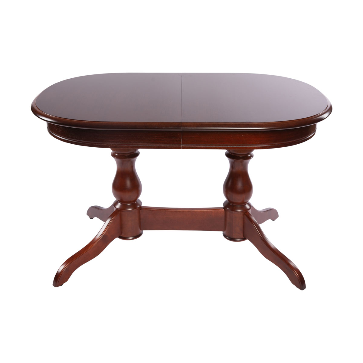 Овальная столешница, обитая шпоном дуба, в разложенном виде имеет оптимальный размер для комфортного расположения 4-6 человек. Но если вам требуется больше места, удобный синхронный механизм раскладки позволяет легким движением руки увеличить стол до полутора или двух метров в длину (в зависимости от модификации). Фигурные опоры с резной отделкой делают мебель максимально устойчивой. Стол изготовлен из натурального массива березы - прочного, долговечного и экологичного материала. При изготовлении на заказ от производителя вы сможете выбрать наиболее подходящий размер, тонировку и купить кухонный стол, который идеально подойдет для вашего дома.