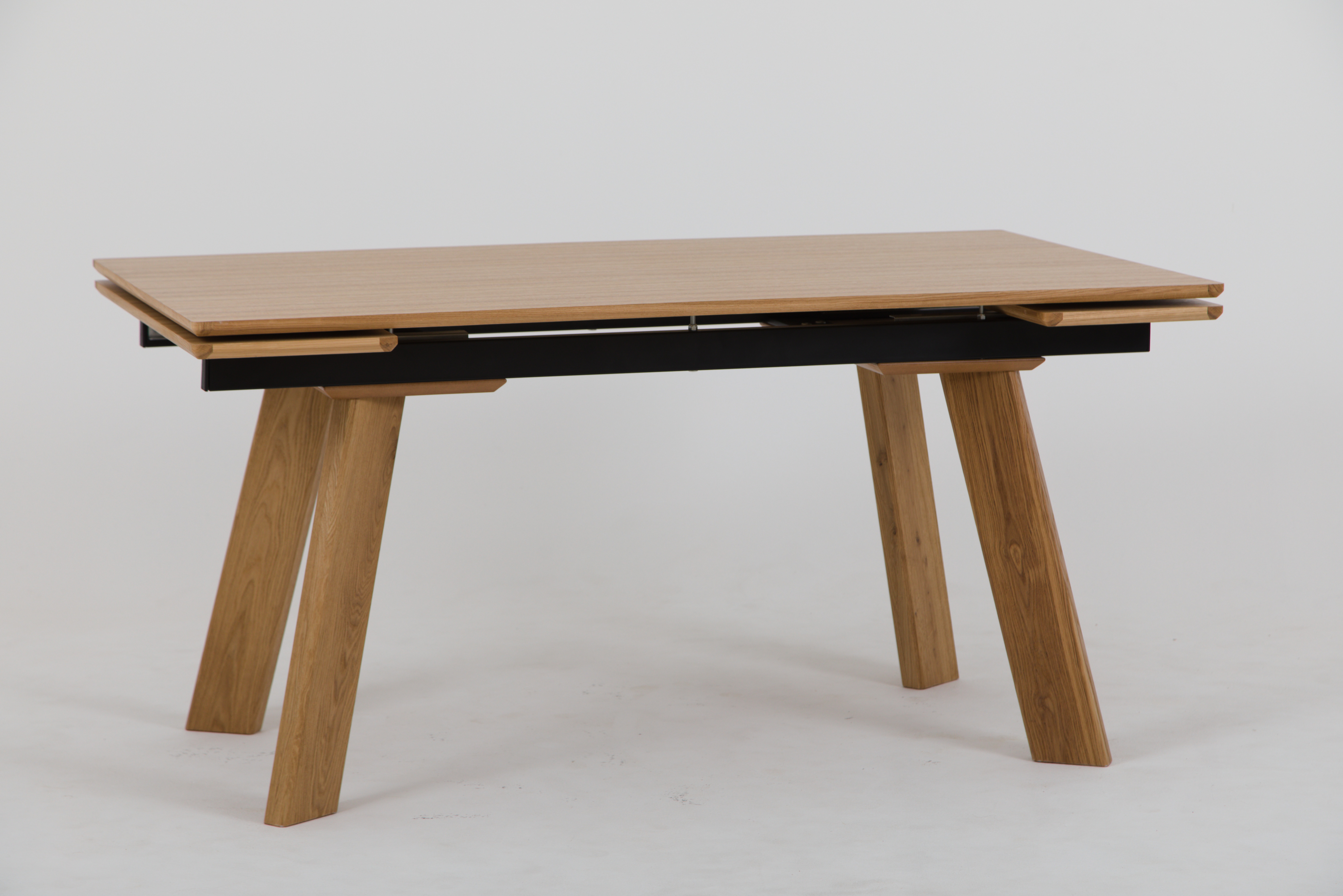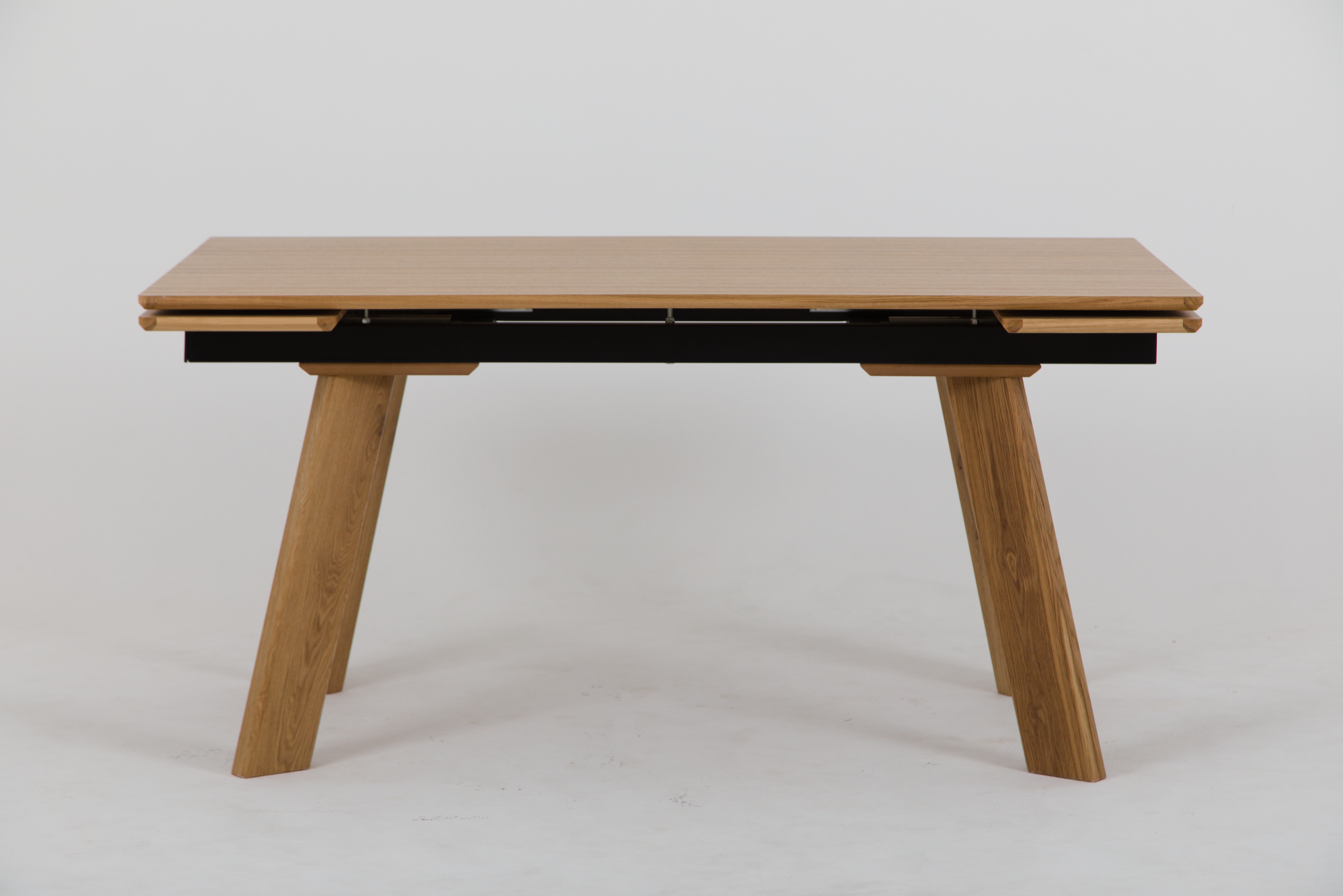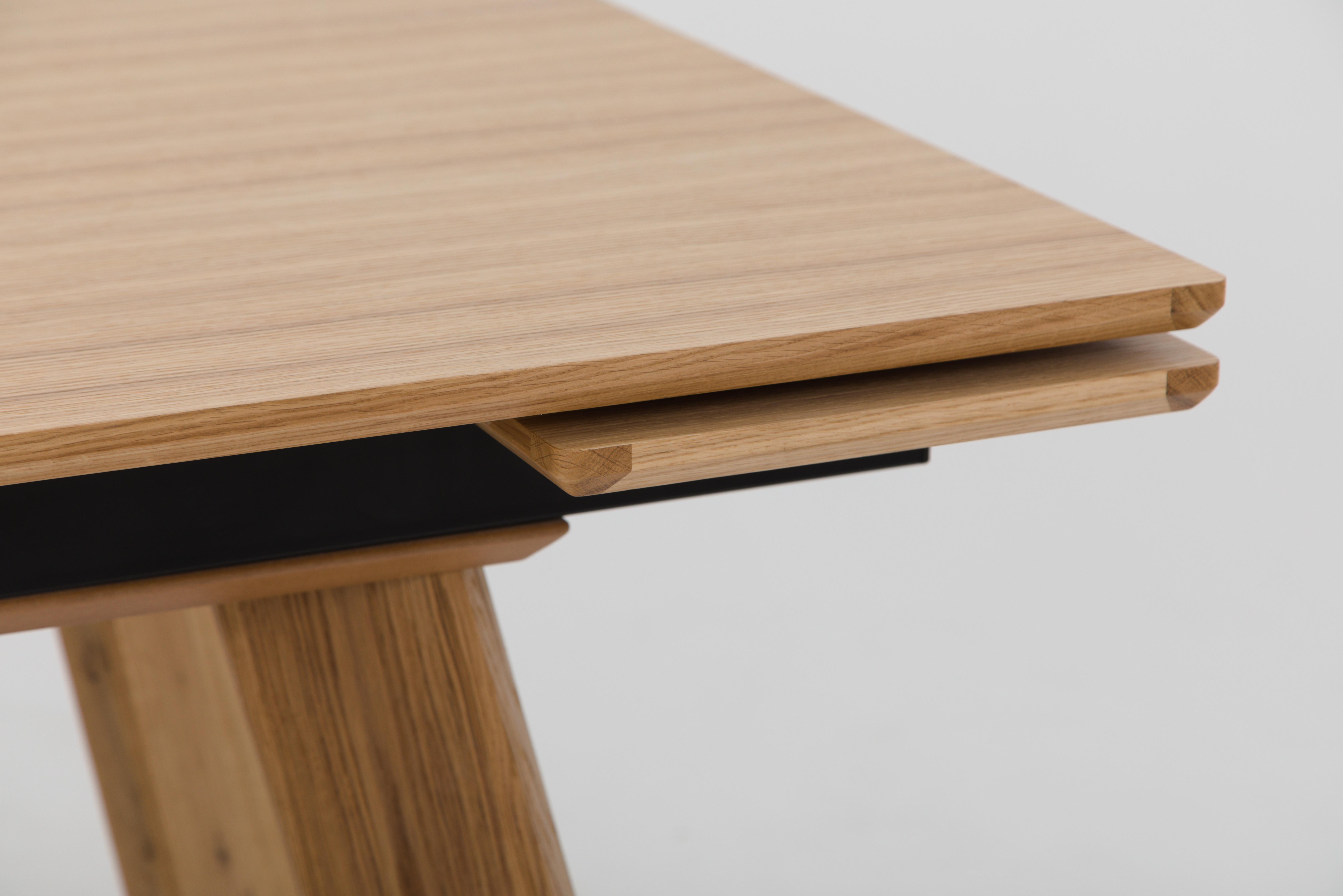 С торцов столешница отделана цельно-гнутым обкладом из массива дуба, сверху и снизу покрыта натуральным дубовым шпоном.
